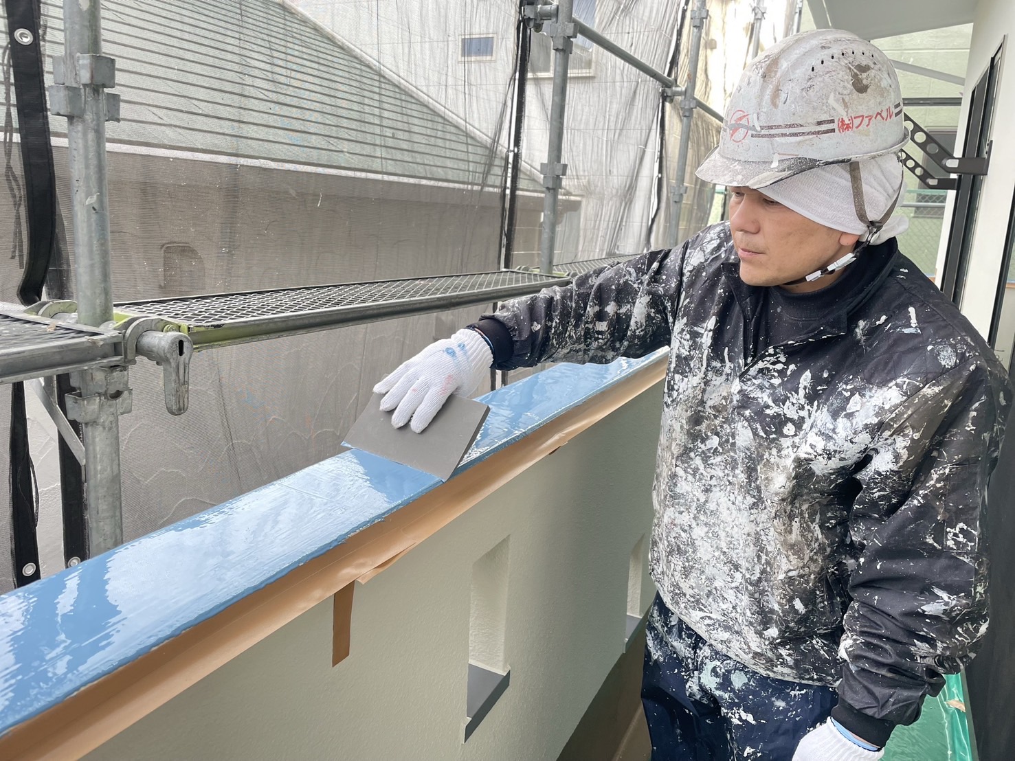 私たちは何となく見よう見真似で塗装工事以外の事を行う業者とは違って多能工として活躍中です。塗装の経験も勿論長いです。防水工事は20年の防水経験のある北谷からの指導を直接受け同じ様に経験を積んでいます。