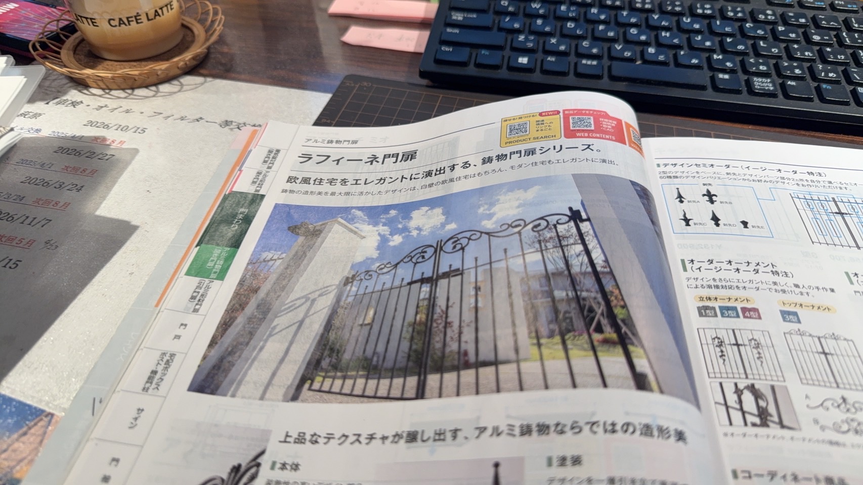 お客様のご要望をしっかりと聞いて事務所ではカタログと睨めっこ👀色は白色が良いと言う事で色々なメーカーを探しますが…なんでかありません💦みんなで色々なカタログや携帯やPCで探して見つけたのが二つだけ。色は黒やブロンズが多いんですね。