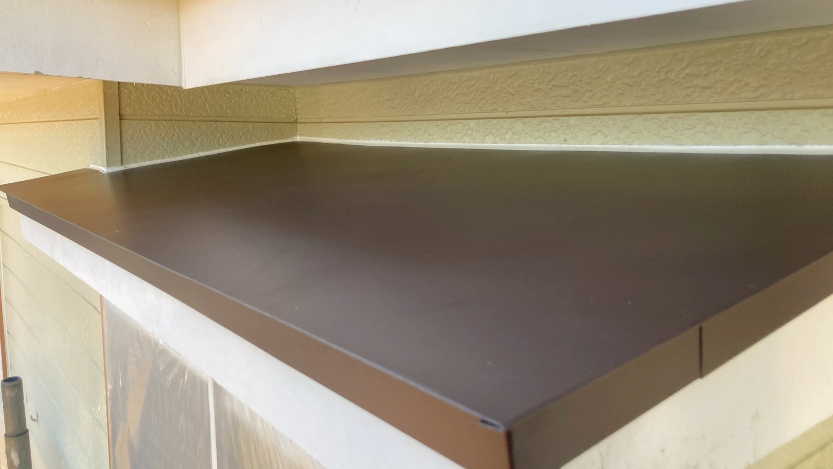 お家には庇や笠木などの板金で出来ている箇所があります。その下は基本木下地となっていますので水の侵入や塗料の劣化による太陽の熱でのダメージな・湿気や結露によって見えない所で腐食が進行している場合も沢山あります。業者の方も見落としがちな箇所ですね👀