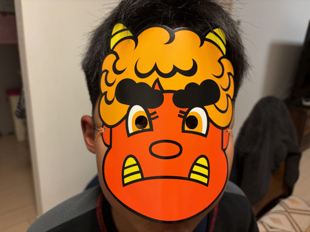 毎年自ら👹役を率先して行う息子。全然怖くないし、誰もビビらないのですが、家族で鬼退治をしました。👹役は途中交代。娘は顔出しNGですが、目の穴が合わず…全く見えないと大爆笑でした♪