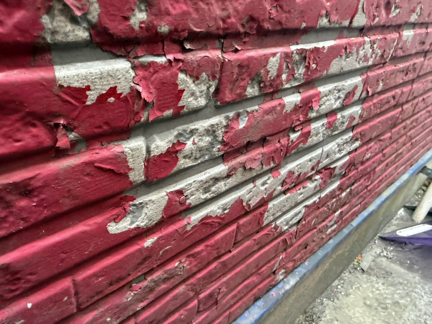 それだけにとどまらず、再塗装する場合はこの塗膜を全て取り除かないと行けません。浮いてしまった塗膜の上に塗ってもすぐ剥がれてしまいます。これでは何のために足場を掛けて高い費用を掛けて塗装したのかがわからなくなります。直そうと再塗装する場合は、旧塗膜の剥がしから始まる為通常よりも費用が多くかかってしまいます。(屋根も同様です)