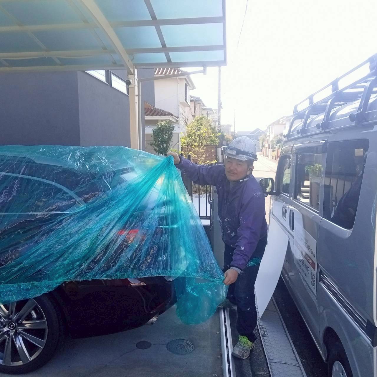 吹付に限らずですが、作業場所周りへの飛散は毎日気を付ける肝心な事。吹付は特に飛散が多いんです。コンプレッサーからのエアーを使って塗料を飛ばしているからですね。昔は結構吹付の仕事が多く、ガン屋っと言う塗装あのジャンルも多くいました。最近では余り聞かなくなりましたが…職人の数も減り、便利な道具も増え…次第に腕が良い職人の姿も見る機会が減り昔より簡単に塗れてしまう時代になり少し悲しい気持ちにもなります。でもお客様側には料金もその分かからなくなるなどの利便性もあるので何とも複雑な心境でいます💦