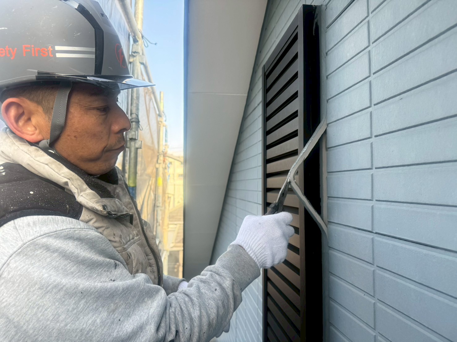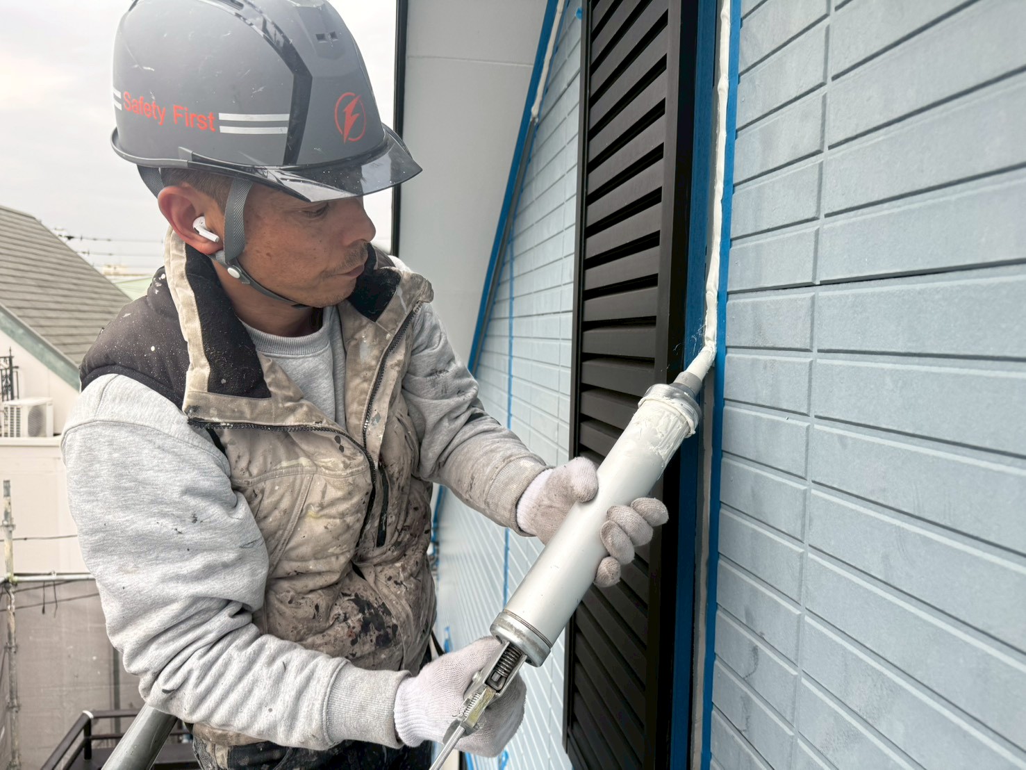 本日は横浜市鶴見区での外壁塗装と屋根塗装。サイディング材の外壁なのでまずはシーリングの打ち替えを、オートンイクシードを使用して行っていきます。シール作業では電話に出る事が作業上難しい為イヤホンを使用して電話対応に心掛けております✨周りの作業員はいきなりしゃべりだすので困惑(笑)