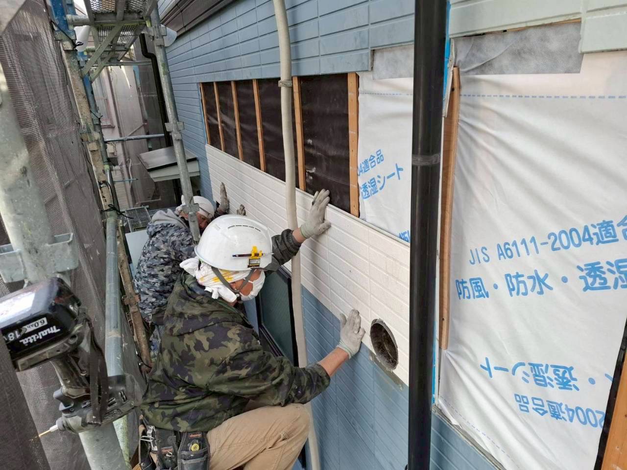 週初めは新しく始まったお家の外壁の張替から👷天候もこの先良く雨の心配をしないで貼り込むことが出来ます。防水透湿シートが切れていた箇所はしっかりと新しい物へ✨サイディングの下はこの様になっていますよ👀