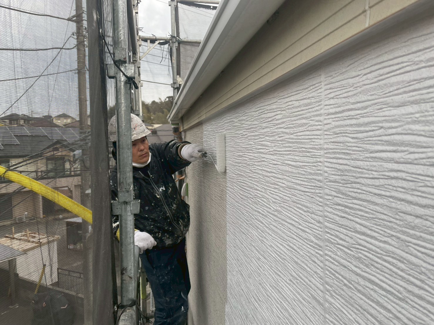 本日は横浜市戸塚区のお家の外壁下塗り作業を行わせて頂きました。何度もしつこいですが、一番大切な下塗りです。劣化が著しい場合は下塗りを2回行う場合も御座います。それは『吸い込み』がある為です。外壁に塗料が吸い込まれて表面にしっかりとした厚みの塗膜が形成されない場合がある為工程数を増やすことがあります。中塗りや上塗りを増やして塗れば色もつくからいいんじゃない?って思う方もいるかと思いますが、それは✖。上塗り材の厚みも大切ですが吸い込みは必ず下塗りの段階で押さえる事が長持ちの秘訣です✨