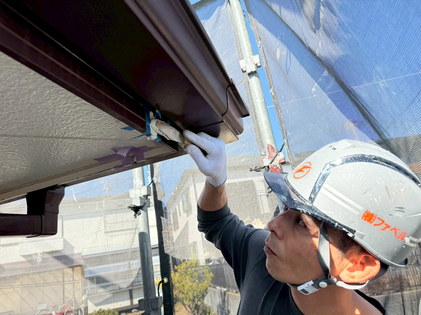余分なシーリング材を取り除きながらしっかりとシール厚みを確保しながら仕上げて行きます。サイディングの塗装にはシーリングはつきものです。塗装を行いながらシーリングの経験もアップ。しっかりとプロのシーリング屋に教えて頂いて勉強しながら20年経ちました。ベテランの方から見たらまだまだですが、極めるまではやり続けますよ。求めるレベルははるか遠くにいますので✨