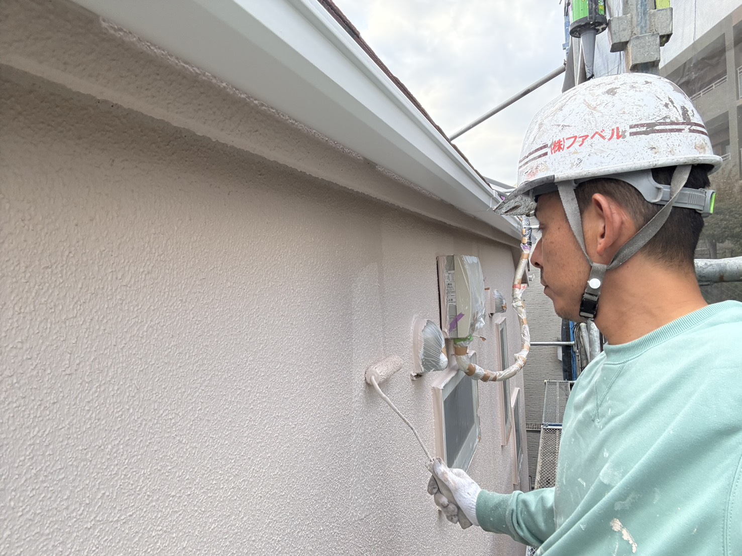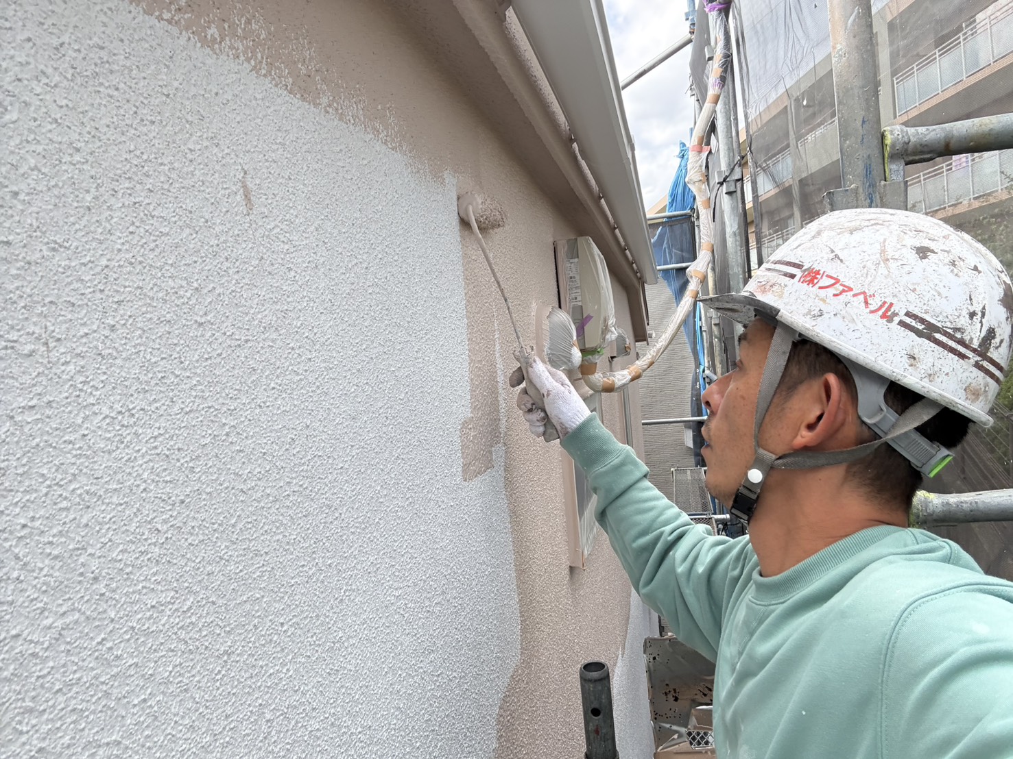 外壁が終わったのでいよいよラスが目前です👀最後まで気を抜かずメッシュシートを取った時お客様の顔が笑顔になれる様仕上げていきます!