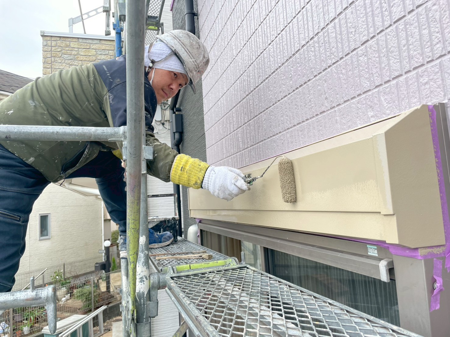 シャッターボックスもしっかりと3回塗り👀足場の高さが合わず難しい体制となりますが、これはいつも同じですので朝飯前です👷