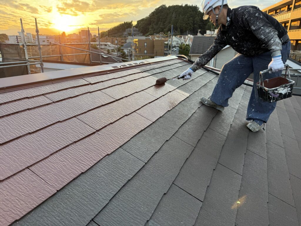 強度が必要なのは補修後にこの様に3回も屋根の上で塗装を行うからです。職人が屋根を歩いて回りますので、だいたい70㎏~80㎏の体重ですから💦