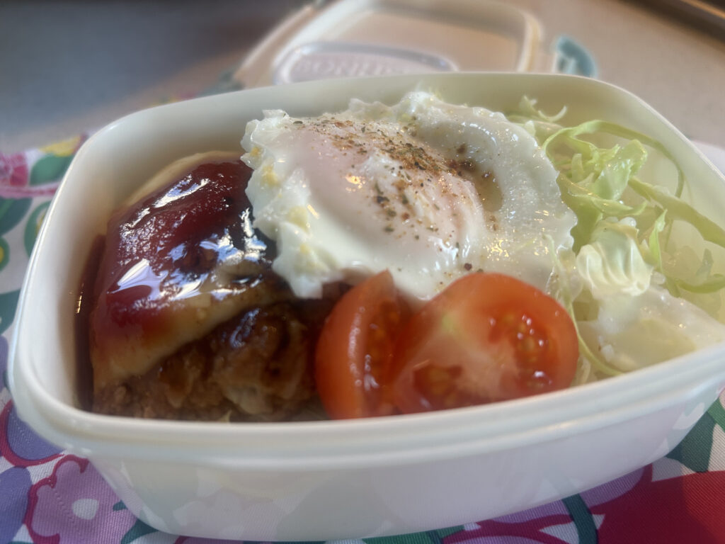 『ハンバーグロコモコ丼』もう少し映えませんかね😅これは女子だから許されるのでしょう。
