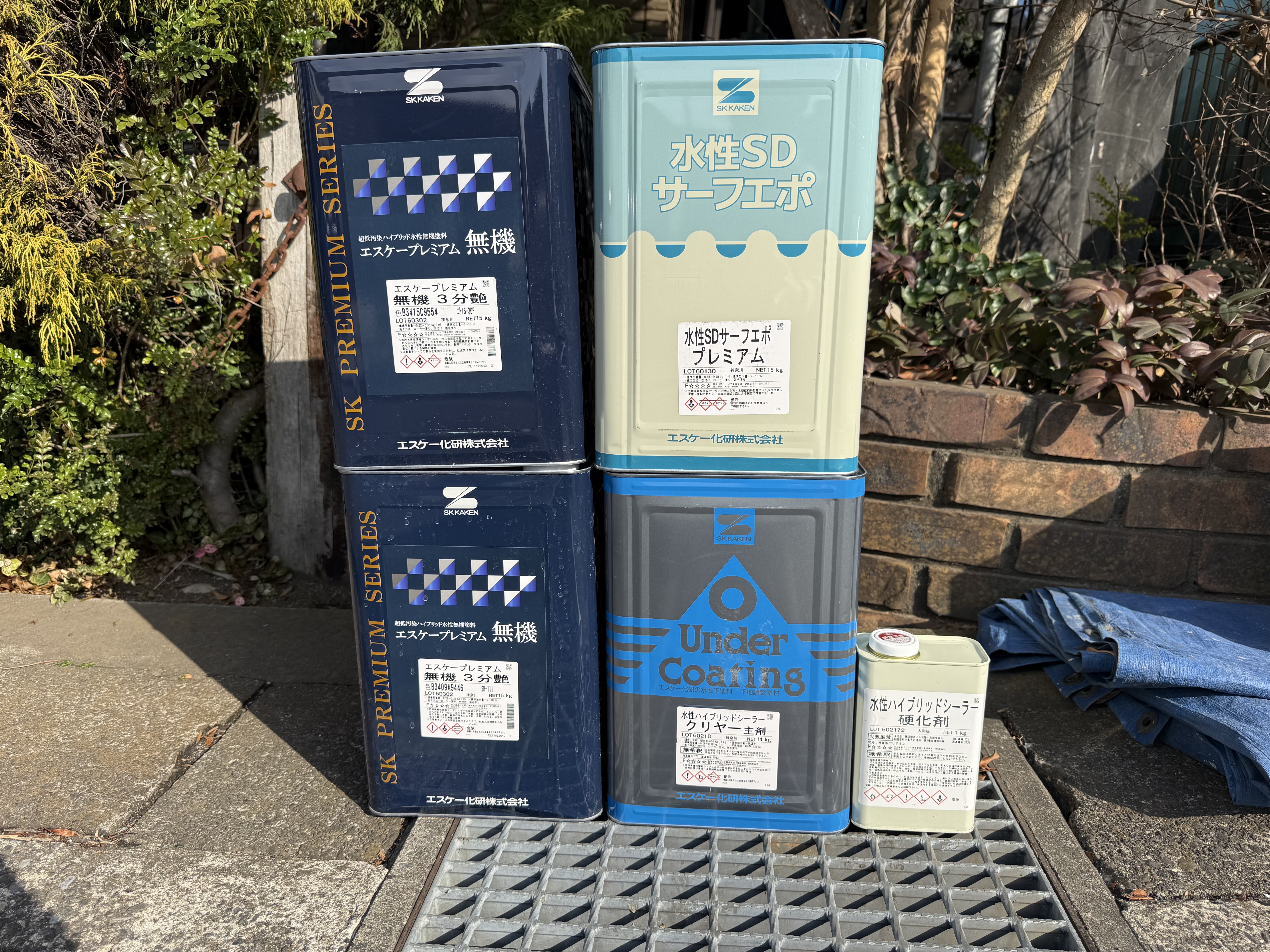 屋根塗装を行っている間にシーリングの乾燥時間も経過したので明日から外壁塗装に入ります。今回は上下サイディングが異なります。難付着性サイディングと普通のサイディングです。難付着サイディングにはハイブリットシーラーを使用。難付着サイディングは一般的に使用している下塗り材では塗れません。剥がれます💦普通のサイディングには今回水性SDサーフエポプレミアムを使用。そして上塗りには無機塗料です!期待耐用年数は驚異の18年以上。ほんとかな?って思う方もいらっしゃるかと思います。ご説明は…現場調査時でお話し致しましょう!