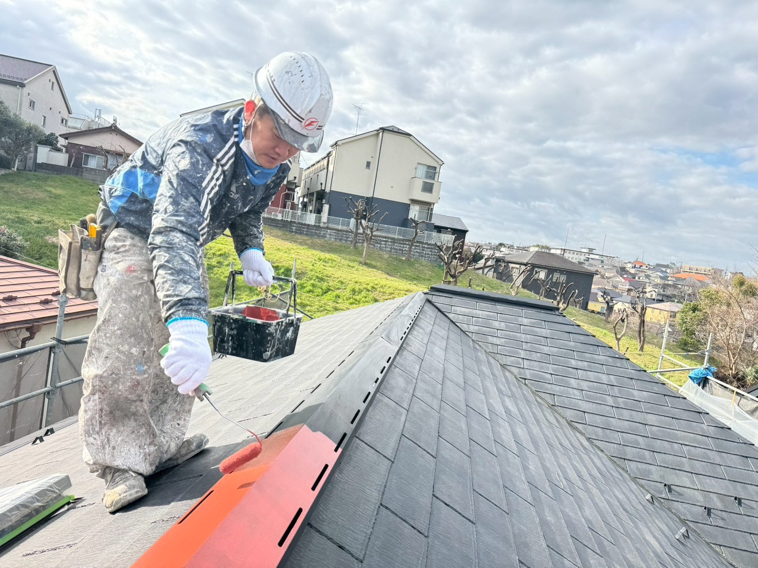 写真の取り方が良いのか?李が屋根塗装をしている写真はどれもかっこよい👀私もこんな写真が欲しい(笑)