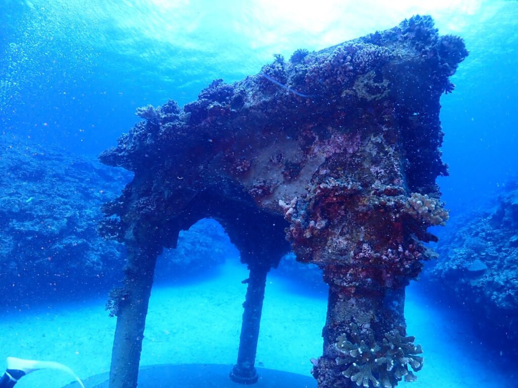 こちらは水深15mの水中宮殿。スキンダイビングでも行けちゃいます。15mをタンク無で行くには練習が必要です。素人は絶対に死んでしまう深さです💦