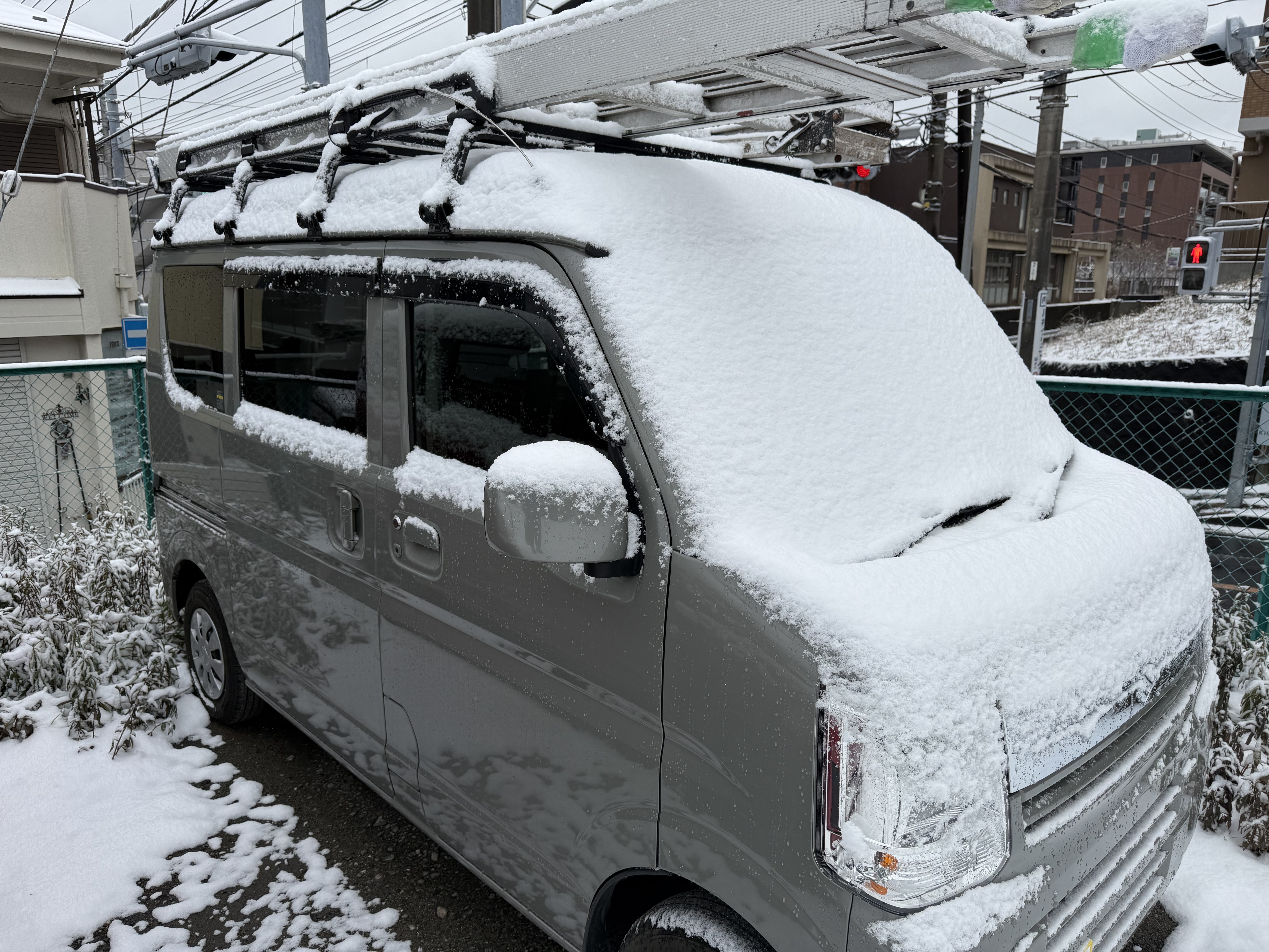 昨日準備した梯子や脚立は雪まみれ。でも大通りなどは路面もしっかりと見れましたので安心いたしました。本日は10時からお見積りの提出の為東希望が丘迄🚙たどり着けるか💦