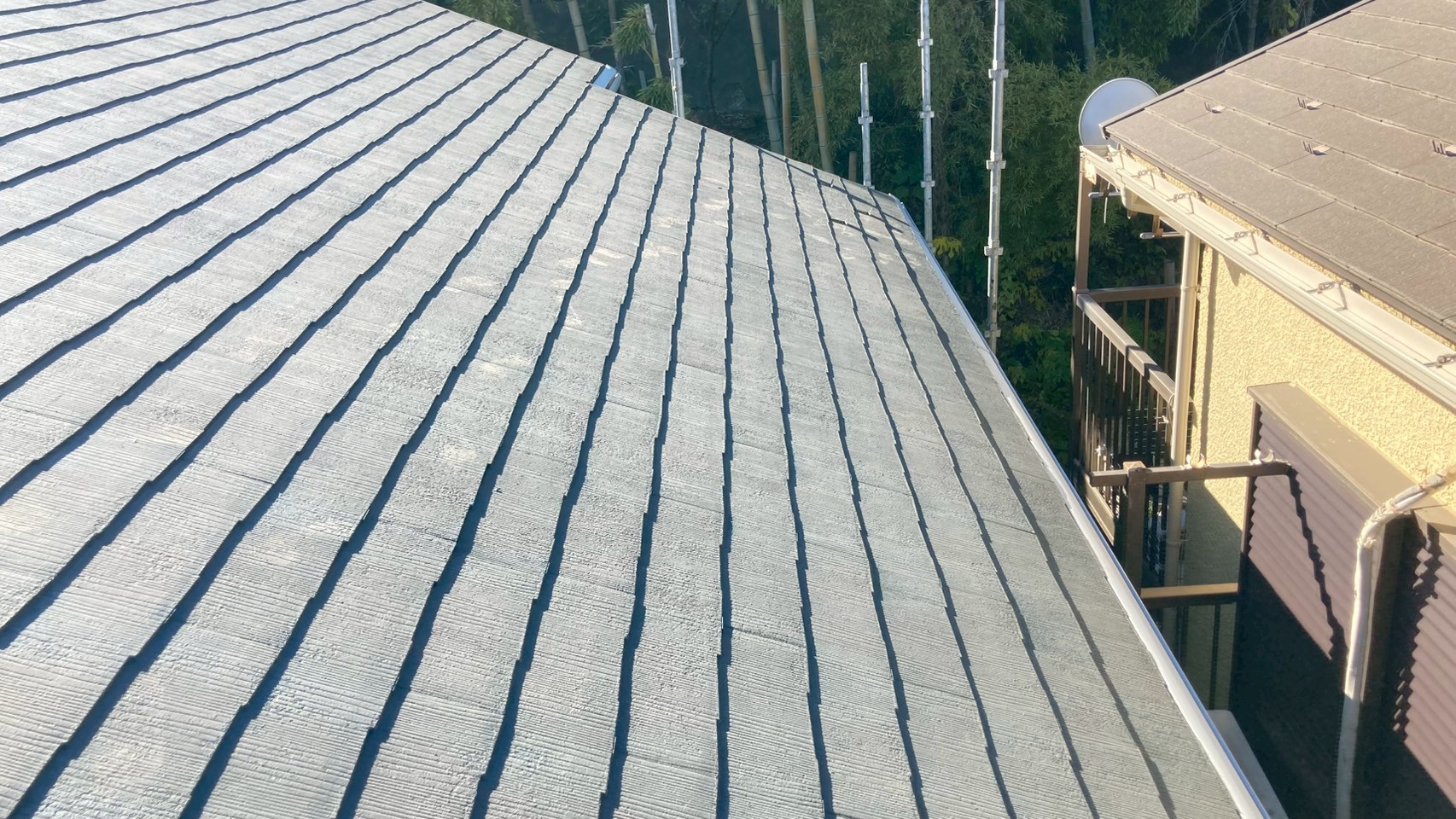 以前に雪が降った際に隣のお家にドサドサと雪が落ちてご迷惑を掛けてしまったとか…屋根に雪止めが設置されていないのはなかなか珍しいです。たまに見かけるくらいでほとんどの家はついていますので。
