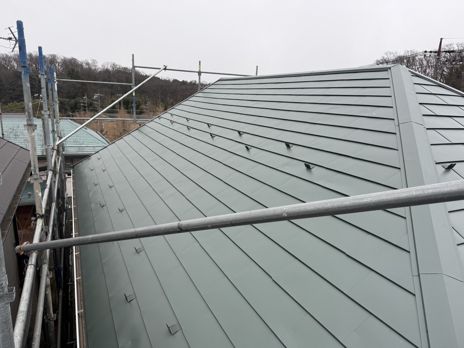 雪が降る前に急げ。と願いも叶い最終の足場解体前の検査を終え来週無事に解体へと運びとなりました。外壁塗装と屋根はガルバリウム鋼板のカバー工法。雪止めはお客様のご要望により2列となりました。この寒さでも断熱材入りのガルバリウムの屋根で寒さ対策はバッチリ✨