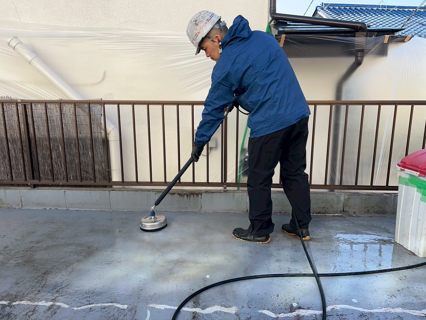 高圧洗浄でもしっかりと床の脆弱部を剥がす事も出来ます!しっかりとデメリットをカバーして施工方法を検討して行う事がプロとして大切です。安かろう悪かろうは色々な事を考えずにその金額でやる事だけを考えて施工するから問題が起きてしまいます💦安からと言ってよい工事とは限りませんので皆様ご注意くださいね。