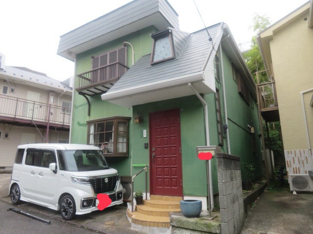 塗り替え前は、穏やかで落ち着いた自然と調和する優しい佇まいでした。塗り替え後は清潔感と個性を兼ね備えた住まいへと変わりました。光の加減で表情を変える青色が通りを明るく彩ります。赤い玄関とのコントラストが印象的ですね。
