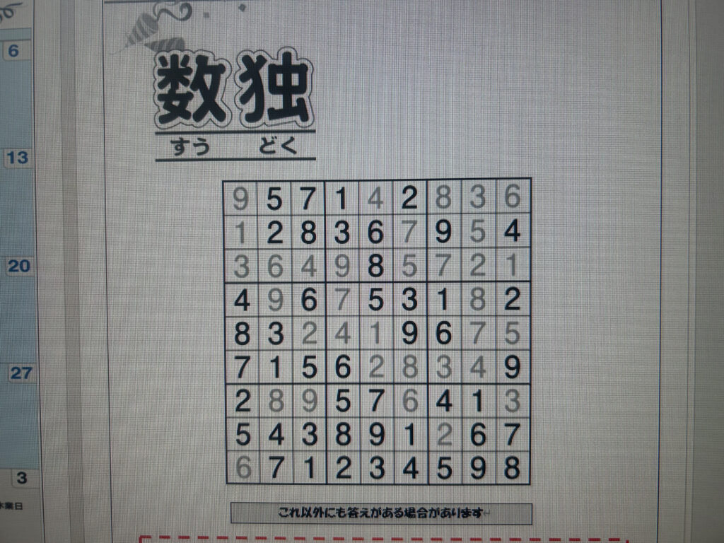 数日遅くなりましたが、数独の答え発表です✨