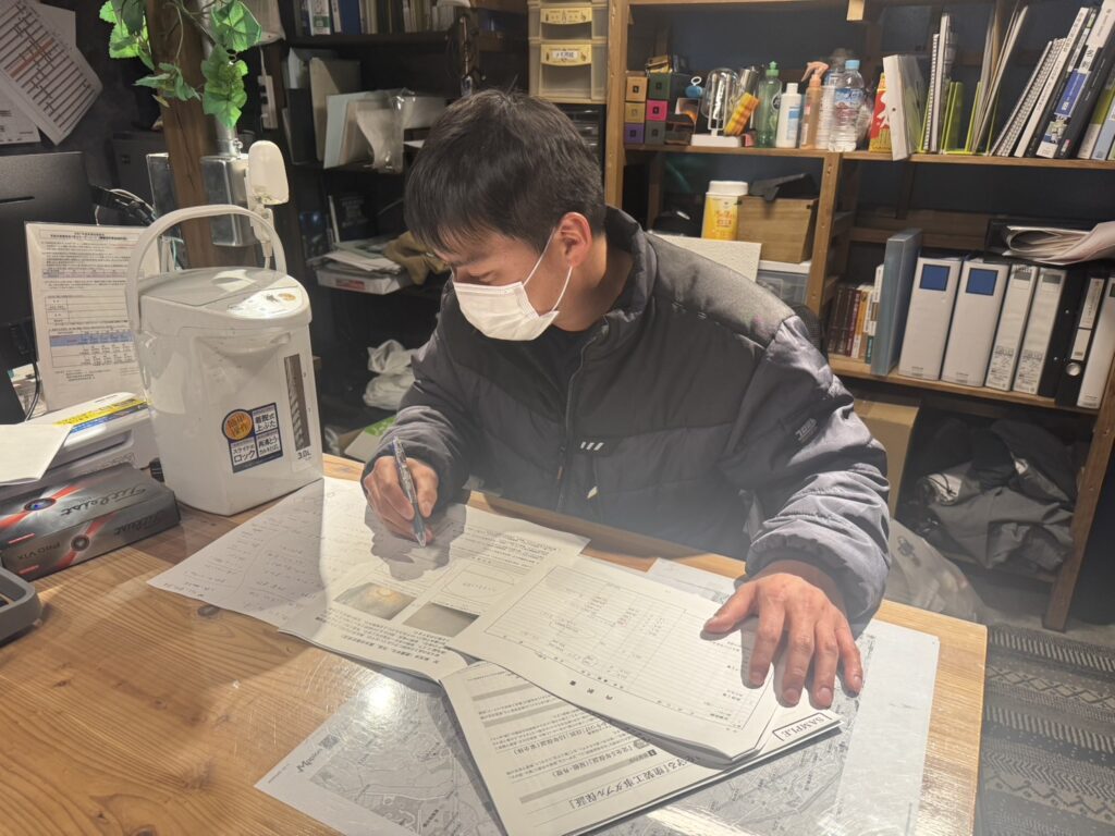 春も夏も秋も冬も沢山の方のおかげで楽しくお仕事をする毎日♪現場作業だけにとどまらず、より分かりやすいご提案が出来る様に、現場調査報告書の作成に色々話合った夜の事務所(笑)