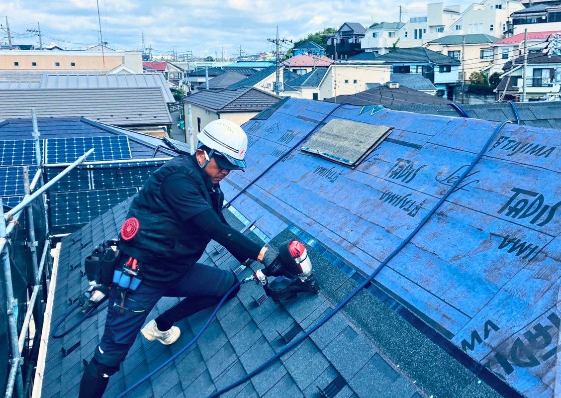 3.防水シート(アスファルトルーフィング)を張り付けます